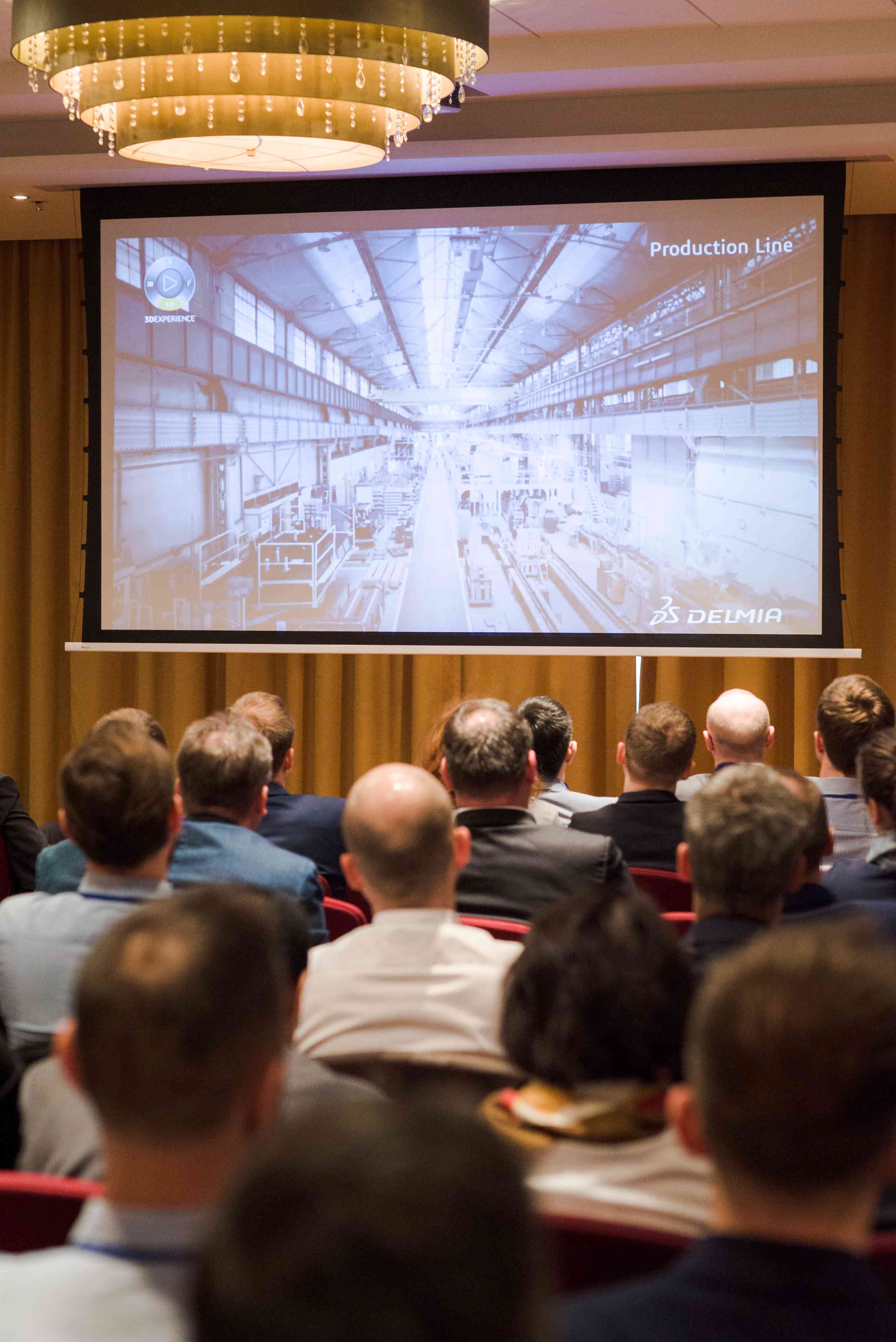 O tym, jak praktycznie wygląda wdrożenie koncepcji Przemysłu 4.0 (na przykładzie Alstom Transport), przedstawił Dariusz Kudzia, Country Manager w Dassault Systemes. Firma jest jednym z największych dostawców oprogramowania w tym do zarządzania produkcją. Na rynku funkcjonuje już od ponad 30 lat i zatrudnia ponad 14 tys. pracowników w tym 150 w Polsce. Firmie Alstom zależało na skróceniu czasu realizacji zamówień i poprawie marginesu zysku. Projekt rozpoczął się we Francji w roku 2013. Jak podkreślał Dariusz Kudzia, transformacja 4.0 to zmiana biznesowa, która obejmuje zmianę systemów, narzędzi, procesów i technologii, ale także zmianę organizacji i zorientowanie procesów bardziej na ludzi. Ten ostatni aspekt jest często pomijany w różnych publikacjach lub umyka naszej uwadze. Jest ważny, bo to ludzie będą realizować projekt i wprowadzać zmiany. Również poparta rzeczywistymi przykładami była prezentacja – studium przypadków – Javiera Ruiz, General Assembly Manager i menedżera ds. projektów Przemysł 4.0, w General Motors Manufacturing Poland. Mogliśmy się przekonać, jak w praktyce można zmienić przedsiębiorstwo. Mówił też o strategii transformacji zakładu, pokazując przykłady inteligentnych rozwiązań cyfrowo-technologicznych. Na przykład w lakierni bank kolorów 4.0 to instalacja, która przygotowuje partie karoserii samochodowych w tym samym kolorze i wysyła je do kabin lakierniczych. Większe partie pozwalają zmniejszyć liczbę przezbrojeń lakierni podczas zmiany koloru, co zwiększa wydajność poprzez ograniczenie czasu na przezbrajanie. Natomiast Virtual Tour to: dostęp online do każdej fabryki GM, możliwość zdalnej lokalizacji urządzeń, system informacji przestrzennej, możliwość planowania nowych inwestycji i śledzenia przepływu procesu oraz kompletne dane przestrzenno-wymiarowe w tym plan budynku w 2D i 3D.