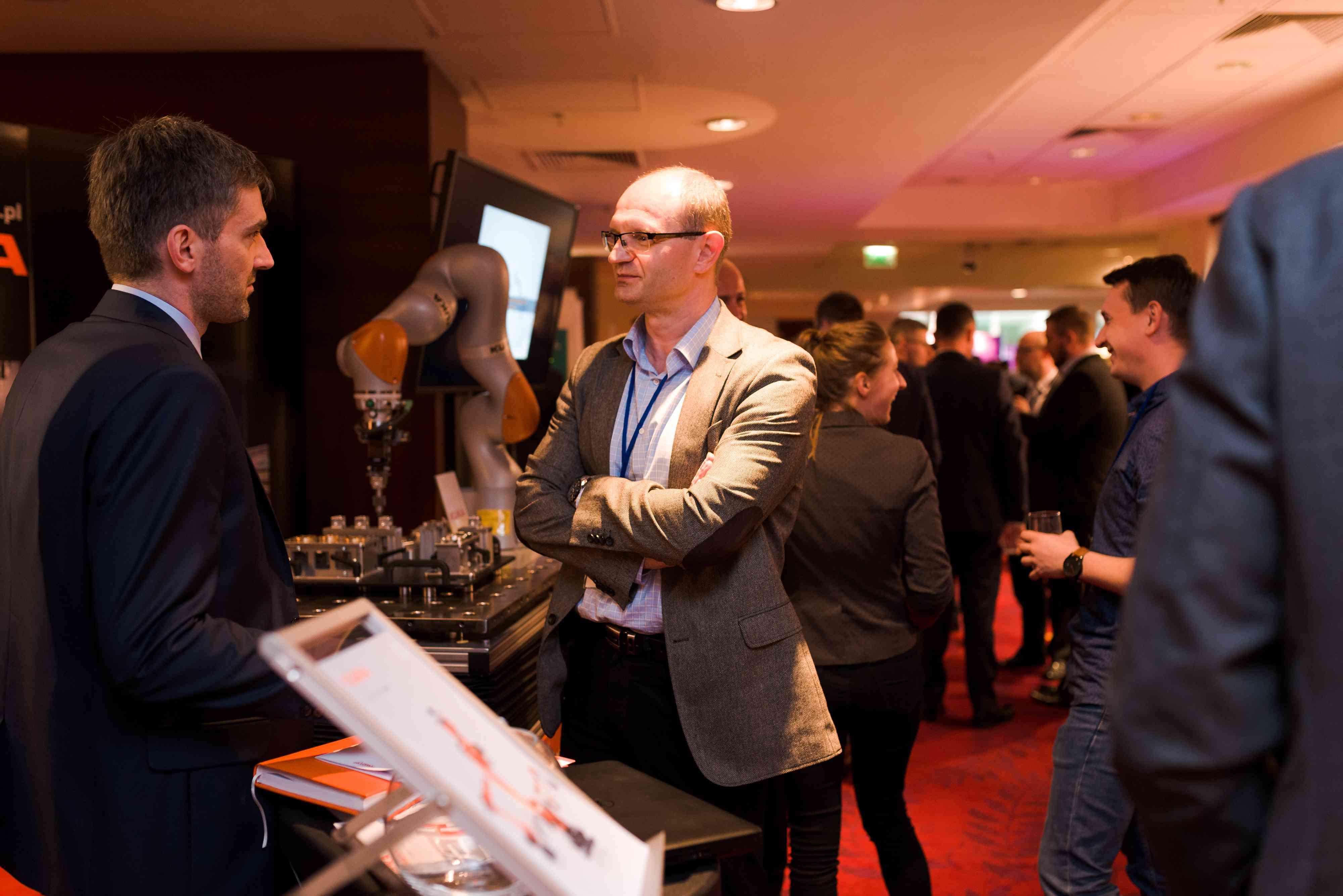 Mariusz Jagosz, ekspert ds. Programowania Utrzymania Ruchu w dziale Inżynierii w firmie Fiat Chrysler Automotive pokazał, jak można eliminować problemy związane z ergonomią przy użyciu robotów kolaboracyjnych. Omówił metody wykorzystywane w kolaboracji (przy pracy z udziałem robota) metody: Safety Monitored Stop, Hand Guiding, Speed and Separation Monitoring i Power and Force Limiting. Wirtualne środowiska modelowania i projektowania procesów zrobotyzowanych to temat wystąpienia dr. inż. Jarosława Panusiuka z Wydziału Mechatroniki i Lotnictwa Wojskowej Akademii Technicznej. Przedstawił implementację środowisk wirtualnych wykorzystywanych między innymi do nauczania studentów. Co nam dają środowiska wirtualne? Między innymi możliwość wykrywania kolizji, które często prowadzą do uszkodzenia narzędzia, detalu lub robota. Zanim kupimy robota do danego stanowiska, mamy możliwość korzystając ze środowisk wirtualnych przetestowania opcji dodatkowych i sprawdzenia, czy będą nam one potrzebne i jak działają. Tę część Konferencji zamykało wystąpienie Krzysztofa Walasa, adiunkta Automatyki i Inżynierii Informatycznej na Politechnice Poznańskiej i dotyczyło robotycznej manipulacja obiektami elastycznymi – percepcji i sterowania systemem cyber-fizycznym. Celem przedstawionego projektu jest budowa wielozadaniowej ręki robotycznej (komponent fizyczny), opracowanie algorytmów percepcji i modelowania własności fizycznych obiektów elastycznych (komponent cyber), sterowanie w pętli od sprzężenia wizyjno-taktylnego systemu cyber-fizycznego oraz zmiana zadania równoważna zmianie programu (brak przezbrajania robota).
