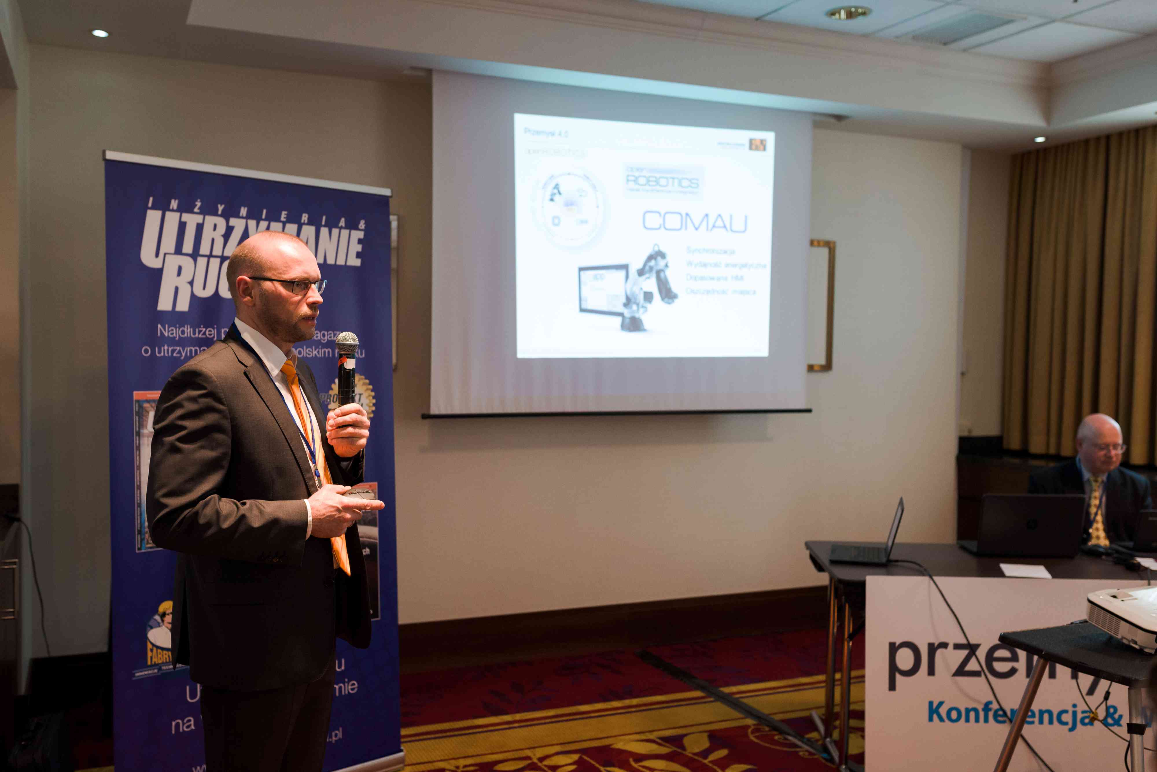 Ostatnim prelegentem w tej części konferencji był Marcin Cieszyński, Body Shop Manufacturing Engineering Manager w firmie General Motors Manufacturing Poland. Przedstawił wykorzystanie obecnie posiadanych zasobów technicznych do wdrożenia „Przemysłu 4.0. Zwrócił uwagę między innymi na wykorzystanie robotów współpracujących i rozszerzonej rzeczywistości. Także na zagrożenia związane z koncepcją Przemysłu 4.0 takie jak cyberprzestępstwa (technologia i produkt) oraz eliminację człowieka z procesu produkcyjnego.